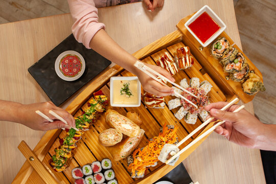 A sumptuous sushi boat overflowing with nigiri, sashimi, and maki rolls