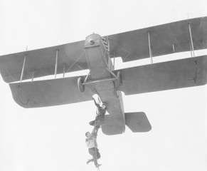 Diving teenage female field hockey goalkeeper lunging to save goal during golden hour
