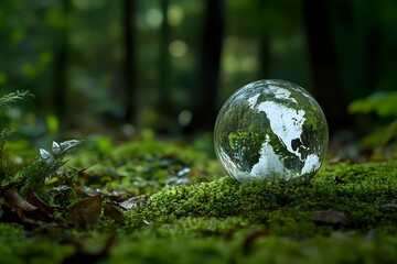 Glass globe, forest, moss, ecology, sustainability, environmental