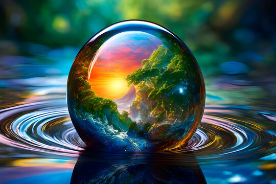 Globe Concept. World environment and earth day concept with glass globe and eco friendly environment, care, nature, concept, earth, eco, ecology, globe, global, environment. Generative AI.
