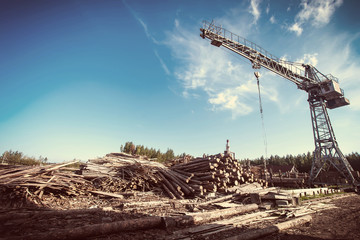 Wooden logs stock on saw mill