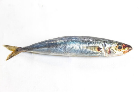 A single mackerel scad on a white background
