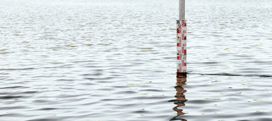 Flood monitoring. Water level gauges. Water meter in lake.