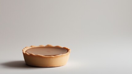 Close-up of a small, round, beige-colored tart shell. the shell has a scalloped edge and appears to be made of a smooth, creamy material. the surface of the shell is smooth and shiny.