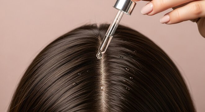Applying Hair Serum to Scalp with Dropper for Hair Growth and Treatment