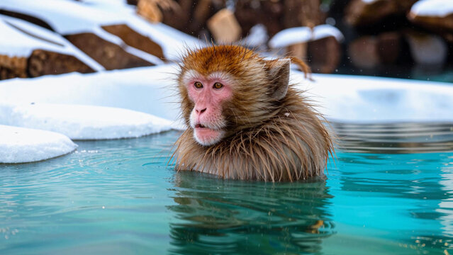 a monkey that is sitting in the water