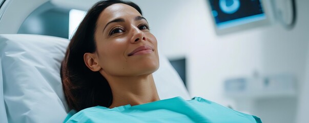 Radiologist showing x-ray report to the female patient. Confident pretty doctor consulting woman in CT scan room. MRI specialist explaining case. Doctor and patient in clinic.