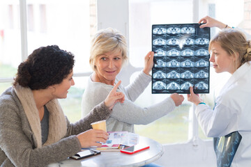 Doctors reviewing brain x-rays;MRI of the blood vessels in the brain and cerebrovascular disease or hemorrhagic stroke.