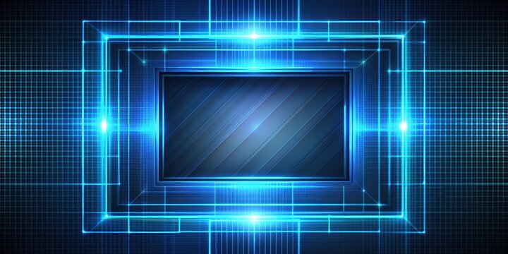 Neon ai display framing holographic grid glowing cyber futuristic interface