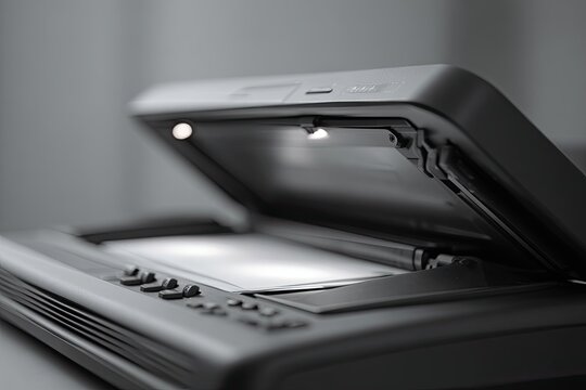 Open flatbed scanner, illuminated