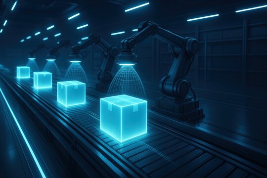 Futuristic digital scanners in a high-tech server room