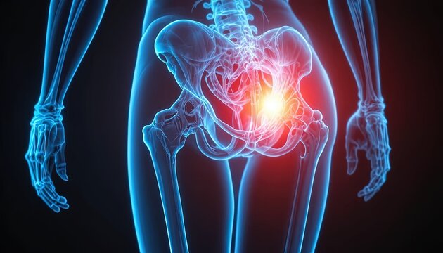 Hip Pain Illustration: Human Anatomy with Highlighted Pain Point, Medical Visualization of Joint Inflammation and Injury
