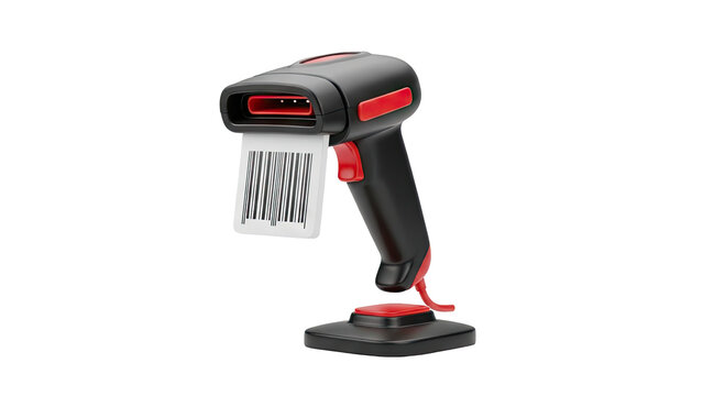 3D Barcode Scanner with Barcode on Stand on transparent background
