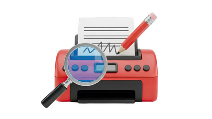Printer with Magnifying Glass and Pencil