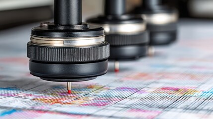 Closeup medium shot of sensor arrays scanning printed sheets to ensure precise robotic alignment during manufacturing