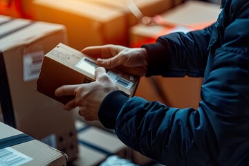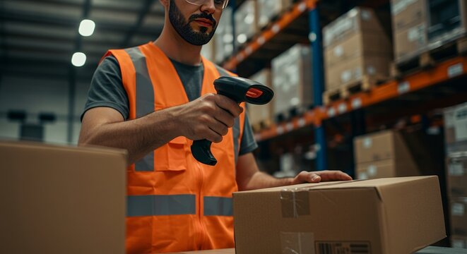 Worker Scanning Barcode on Package Close-up