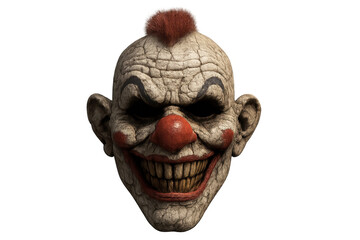 Portrait of a scary clown peering from behind a wall. Halloween mask of fear. Clown horror poster