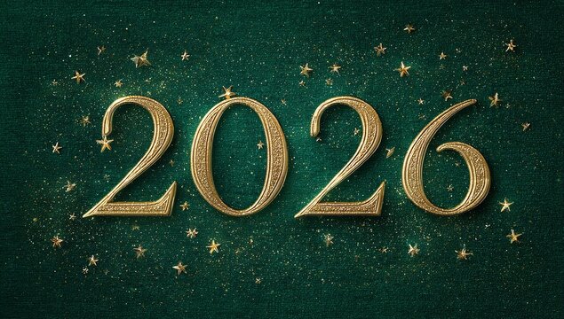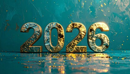 Golden glitter numbers 2026 with scattered confetti and ribbons new year celebration