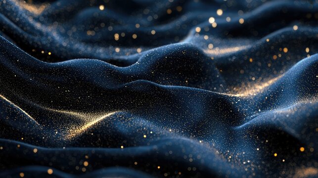 Sand dunes under starlight with glowing particles scattered across the desert landscape