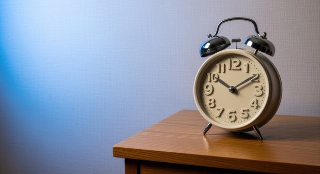 Classic Twin Bell Alarm Clock on Nightstand Emphasizing Time Management and Punctuality