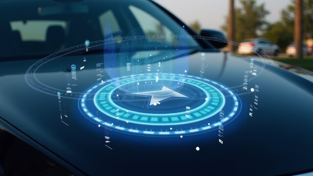 Digital data interface with futuristic holographic diagrams