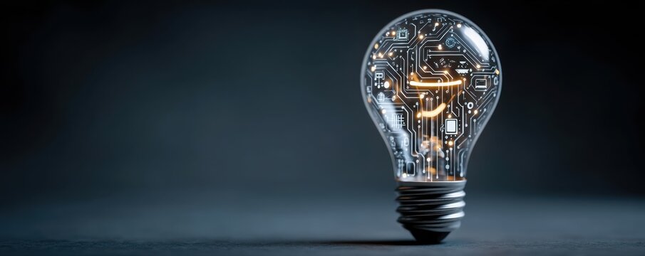 Abstract light bulb with digital circuit design symbolizing innovation, technology, and new ideas