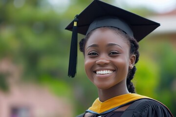 A hopeful image of a young woman graduating with a scholarship, emphasizing education as a tool to escape poverty.