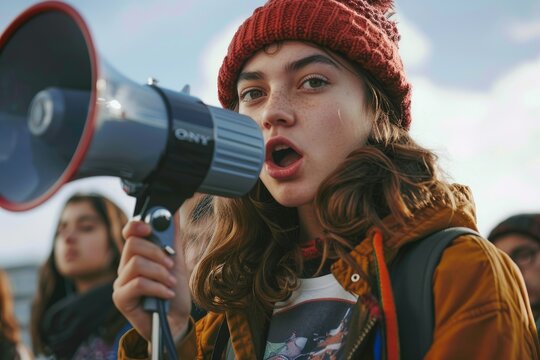 Protest portrait, poster and city student rally for human rights support, USA gun control or stop school shooting. Students banner, global justice and teen black woman march for government law change