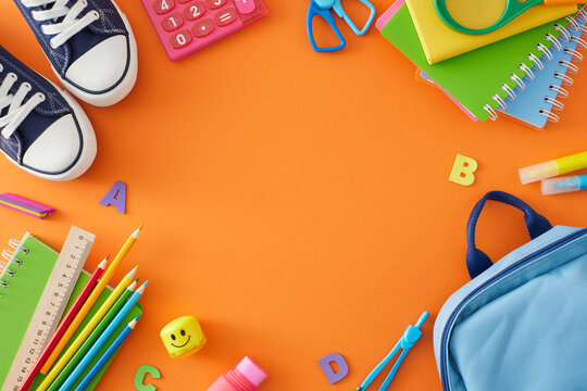 Colorful school supplies for students and teachers