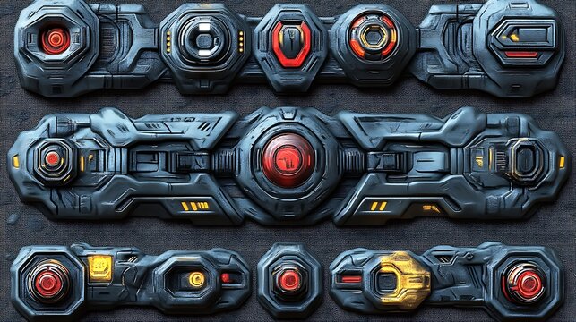 Futuristic Sci Fi Control Room Interior with Glowing Screens and Red Orange Lighting