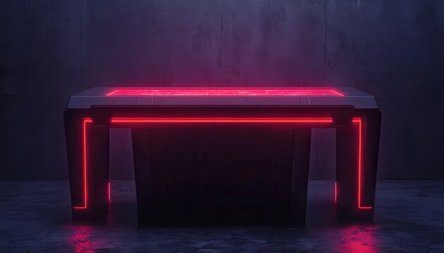 Futuristic Neon Table Red Glowing Display Sci fi Dark Background Product Showcase