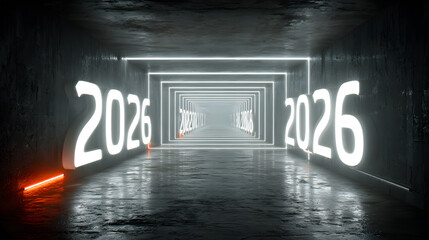 Futuristic 5g digital network in illuminated sci-fi tunnel