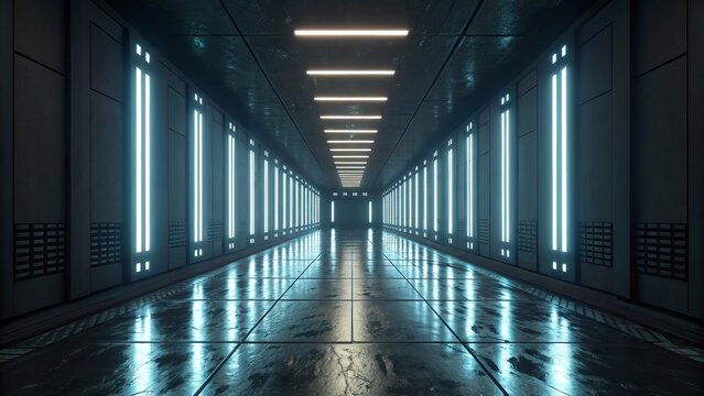 Futuristic sci-fi tunnel with vibrant lights