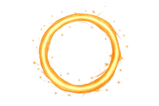 Glowing golden oval spark ring emitting filament sparks and halo glow on dark background