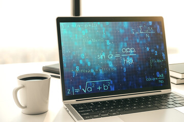 Creative scientific formula illustration on modern computer monitor, science and research concept. 3D Rendering