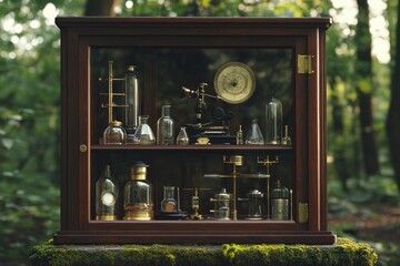 Experimental setup with test tubes and fresh herbs in scientific study