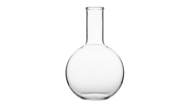 Round bottom flask isolated PNG on transparent background, laboratory glassware for chemistry and scientific experiments