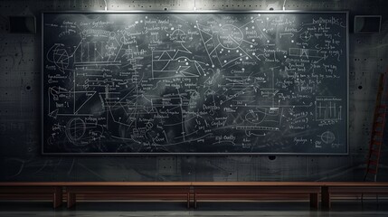 Blackboard Inscribed with Scientific Formulas and Calculations