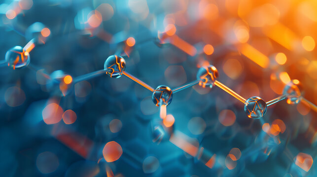 carbon molecules on a blue and orange gradient color, highlighting molecular structure for scientific or medical concept
