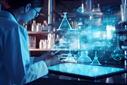 Scientist Analyzing Chemical Data Using Digital Interfaces Images