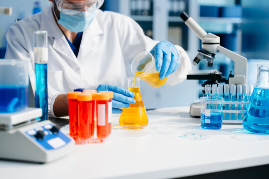 Scientists, beakers, and microscopes in cutting-edge research. Perfect for science and technology projects.