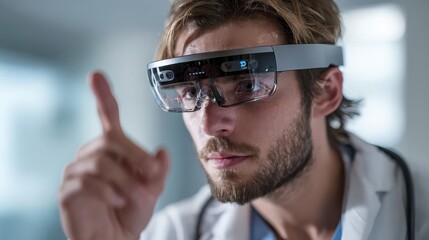 Doctor Using Augmented Reality Headset for Advanced Medical Technology