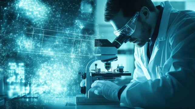Scientist Using Microscope in Modern Lab Digital Overlay