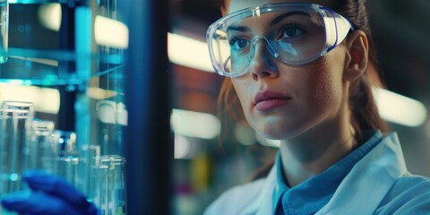 laboratory, scientist, research, female, scientist in lab coat, test tubes, analyzing, scientific research, professional, focused expression, innovative technology, clinical setting, modern laboratory