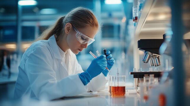 Laboratory scientist working in a laboratory. Scientist in a lab with a micro pipette. High-tech modern laboratory with pristine equipment. Scientist conducting research in lifestyle a lab.