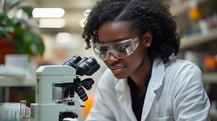 Female scientist examining sample in laboratory setting