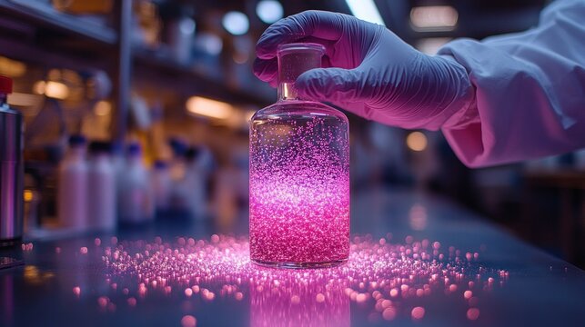 Scientist handling a chemical flask in a lab