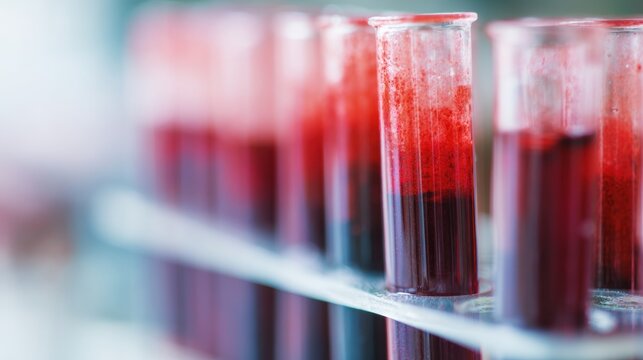 Scientist handling blood samples in medical laboratory environment