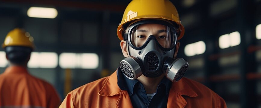 professional a gas mask engineer factory in protective uniform operating machine, Engineering worker in safety hardhat at warehouse industrial facilities, Heavy Industry Manufacturing , An abstract di