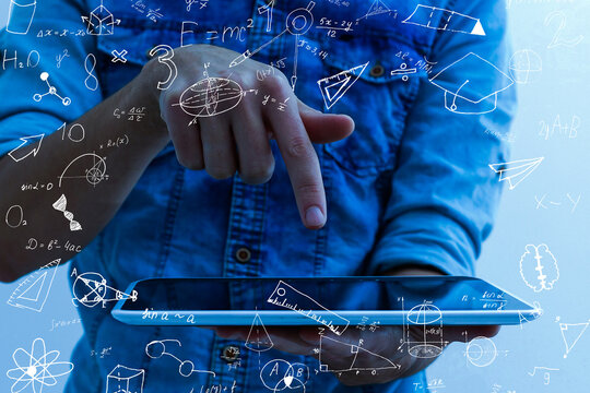 Scientist doctor hand touches virtual molecular structure in the lab. AI Generated